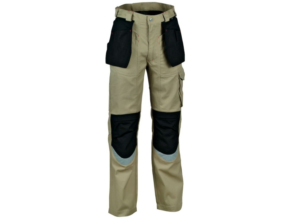 Pracovné nohavice značky Cofra kombinujú funkčnosť a odolnosť. Vybavené sú ergonomicky tvarovanými kolenami, nylonovými vreckami na nákolenníky a klince, zosilneným rozkrokom a reflexnými prvkami pre vyššiu bezpečnosť. Nechýba pútko na kladivo, nastaviteľný pás a spoľahlivý YKK® zips. Vhodné na každodenné nosenie ako univerzálne pracovné nohavice. Vďaka neutrálnej farbe vhodné aj ako poľovnícke nohavice či lesnícke nohavice.