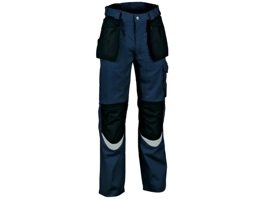 Pracovné nohavice značky Cofra kombinujú funkčnosť a odolnosť. Vybavené sú ergonomicky tvarovanými kolenami, nylonovými vreckami na nákolenníky a klince, zosilneným rozkrokom a reflexnými prvkami pre vyššiu bezpečnosť. Nechýba pútko na kladivo, nastaviteľný pás a spoľahlivý YKK® zips. Vhodné na každodenné nosenie ako univerzálne pracovné nohavice.