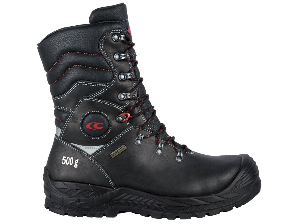 Vysoká pracovná obuv značky Cofra v čiernej farbe vo forme kanád je vyrobená z pravej talianskej celozrnnej kože s GORE-TEX membránou. Je vodeodolná, priedušná a výborne odoláva mechanickému poškodeniu. Chladuodolná podrážka ochráni chodidlo počas zimných mesiacov a zateplenie izolačnou plsťou zabezpečí pohodlie pri nosení. Predná časť chodidla je chránená vďaka sklolaminátovej špici a členok stabilizuje antitorzná ochrana. Svoje využitie nájdu tieto topánky predovšetkým v chladných zimných mesiacoch.