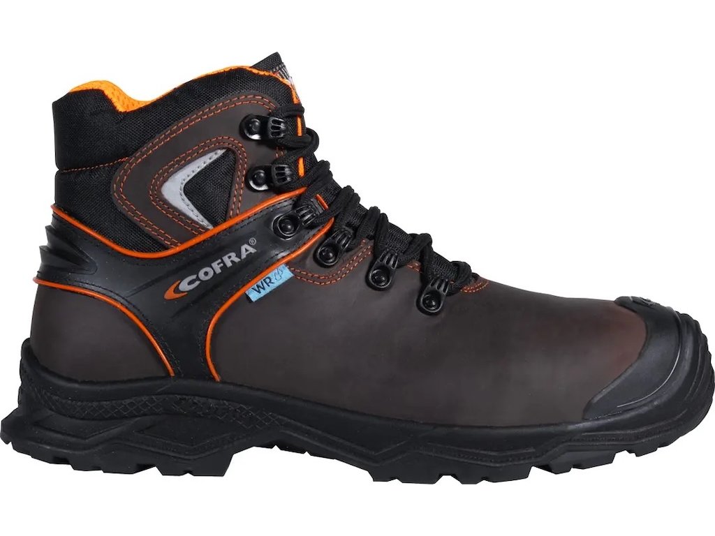 Pracovné členkové topánky značky Cofra v hnedom prevedení s odľahčenou sklolaminátovou ochranou členka a špice zaistia bezpečie a ochranu vášho chodidla. Tieto nubukové kožené topánky sú vodeodolné a zapečatené švy zabránia vniknutiu akejkoľvek vlhkosti do vnútra topánky. Vďaka teplu a chladuvzdornej podrážke sú vhodné ako celoročná nepremokavá pracovná obuv.
