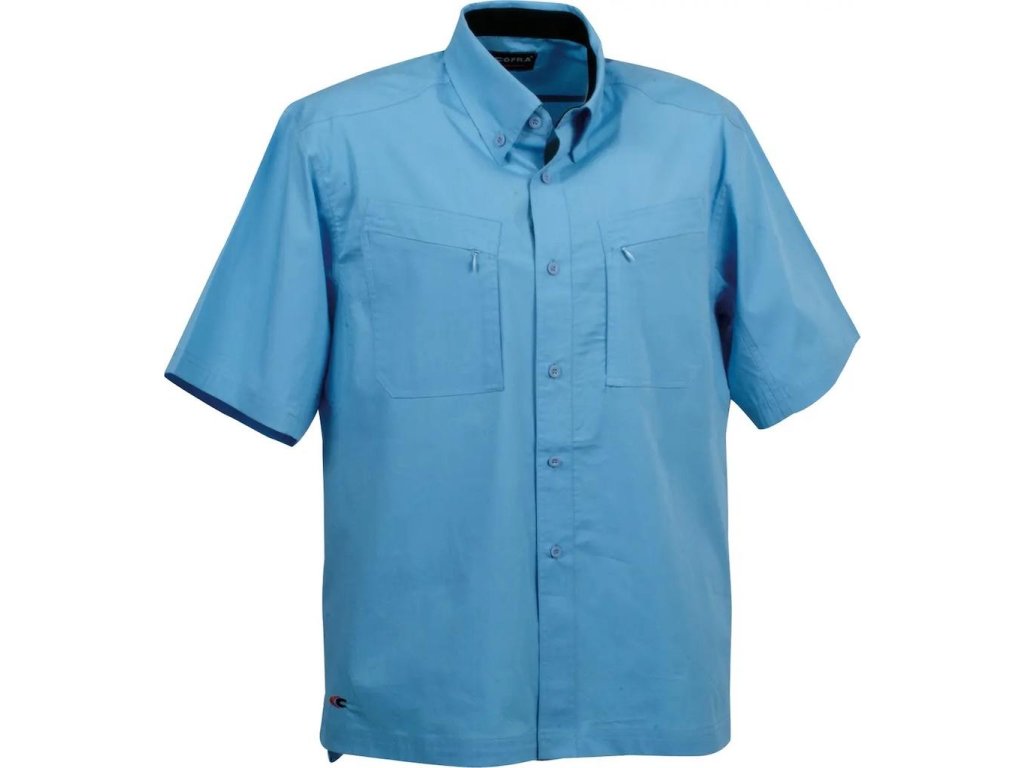 Košeľa značky Cofra vyrobená z rýchloschnúceho elastického materiálu s krátkym rukávom je elegantná a univerzálna. Má zapínanie na plastové gombíky, ktoré ladia s farbou látky, dve náprsné vrecká a rovný spodný lem. Je vhodná ako pracovná elegantá košeľa pre manažérov či pracovníkov v službách. Pohodlný materiál a jednoduchý vzhľad ju predurčuje na pracovné, no aj spoločenské nosenie.