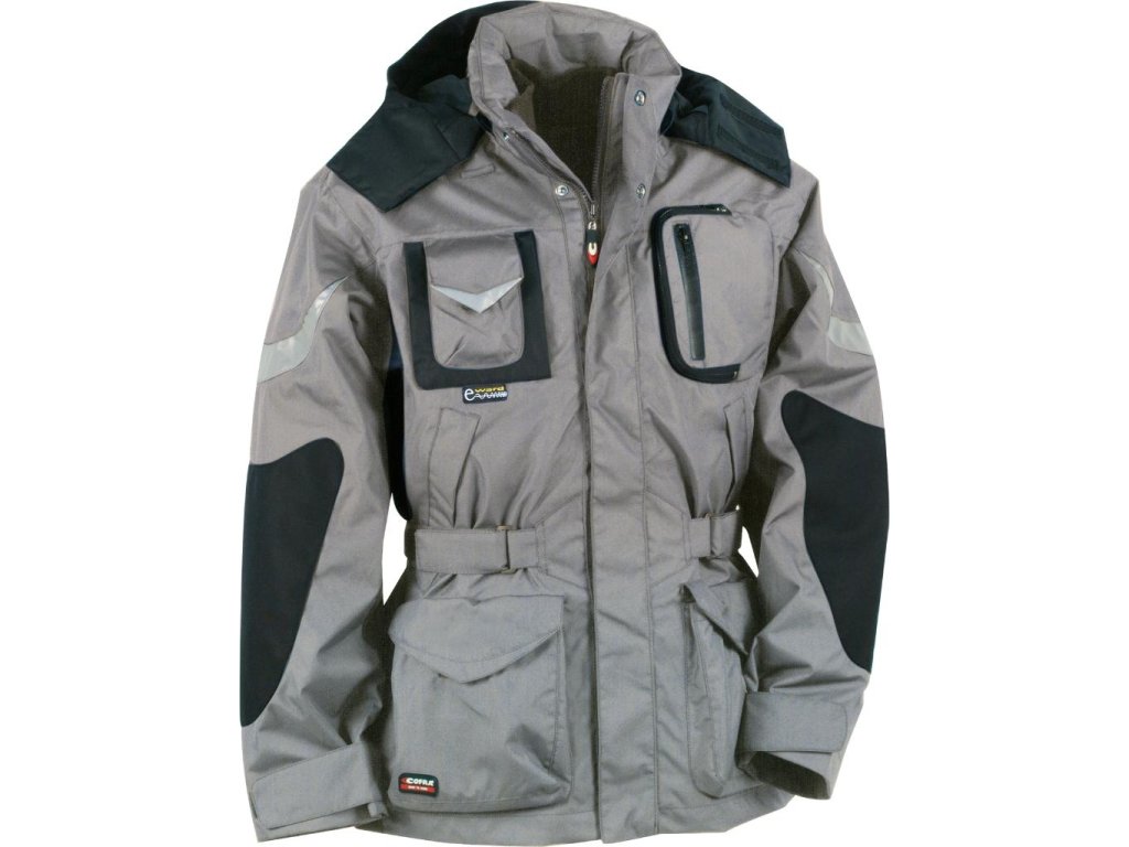 Zimná bunda značky Cofra s technickou výplňou, výbornou tepelnou izoláciou a zníženým objemom. Vetruodolná, vodeodolná a chladuvzdorná bunda vhodná do náročných pracovných podmienok. Má ergonomický strih, termo-zvárané švy a reflexné prvky pre vyššiu bezpečnosť. Ponúka 11 vonkajších vreciek, odnímateľnú kapucňu a rukávy, vrecko na mobil s E-WARD ochranou a zosilnené lakte pre maximálnu funkčnosť a komfort. Vhodná ako zimná pracovná bunda či voľnočasová zimná bunda.