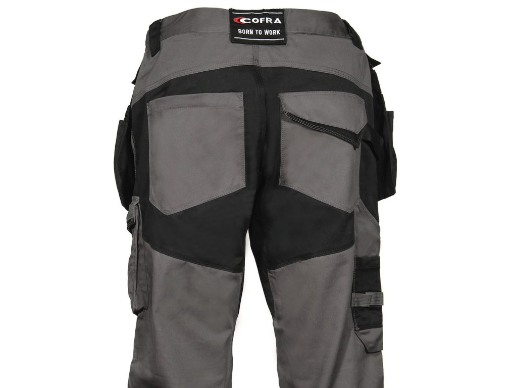 Pracovné nohavice značky Cofra sú stvorené pre maximálnu voľnosť pohybu a odolnosť v teréne. Pružný materiál, ergonomický strih kolien a rebrované vsadky zaručujú pohodlie aj pri náročnej práci. Nechýbajú nastaviteľné vrecká, odopínateľné vrecká na náradie, praktické úložné priestory a reflexné prvky pre vyššiu bezpečnosť. Spoľahlivá voľba pre profesionálov, ktorí hľadajú funkčné pracovné monterkové nohavice.
