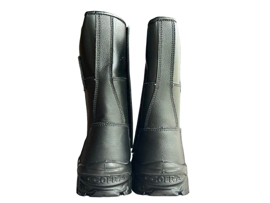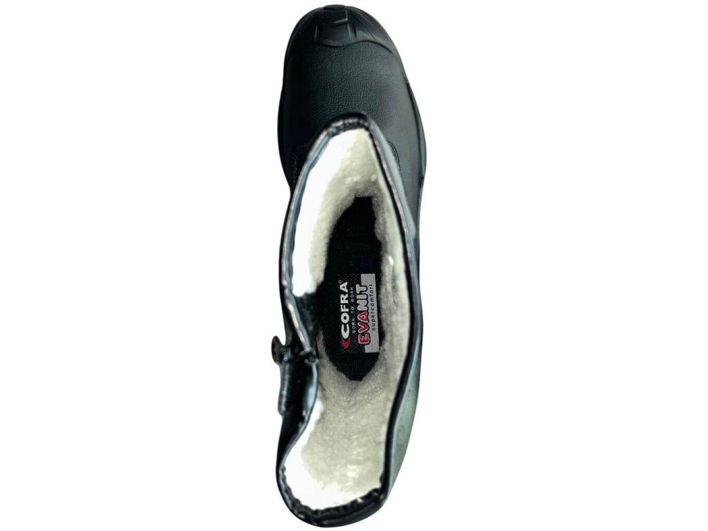 Pracovná bezpečnostná obuv značky Cofra vo vysokom prevedení v podobne pracovných čižiem spĺňa bezpečnostnú normu S3 a vyhlášku EN ISO 20345:2011. Je vyrobená z voduodpudivej kože a je zateplená ekologickou kožušinou. Zároveň je doplnená o bezpečnostné prvky ako je napríklad oceľová ochranná špica, oceľová medzipodrážka a protišmyková podrážka izolujúca pred chladom. Praktickým doplnkom je okopová abrazívne rezistentná špica, ktorá chráni prednú časť topánky pred mechanickým poškodením.