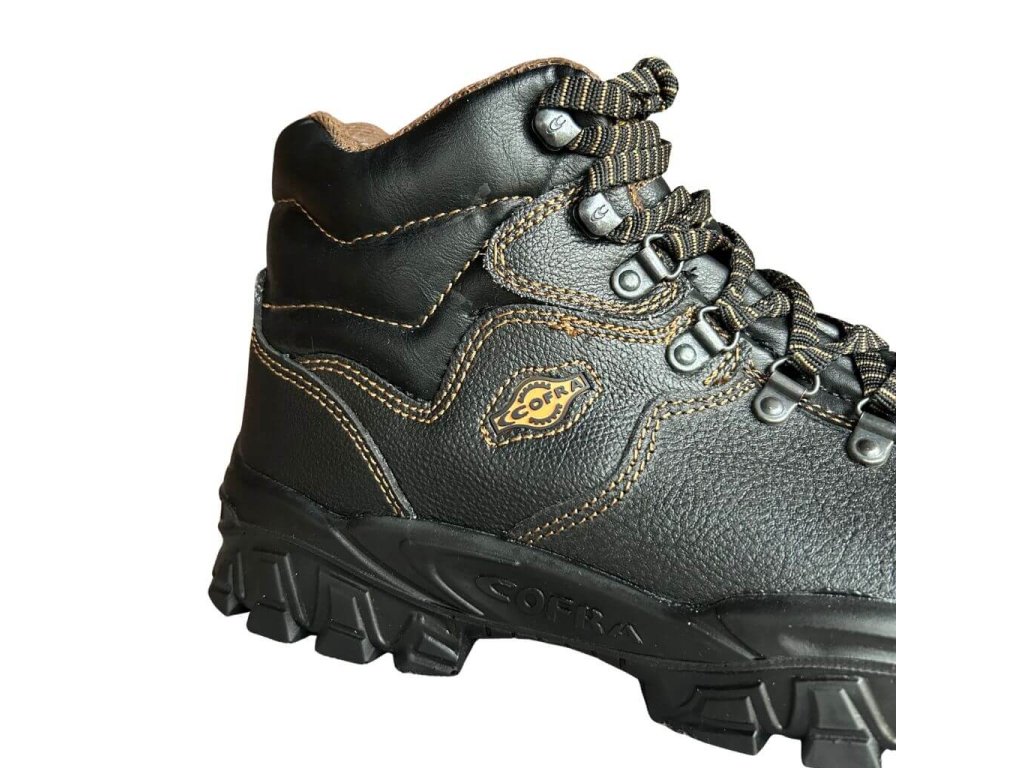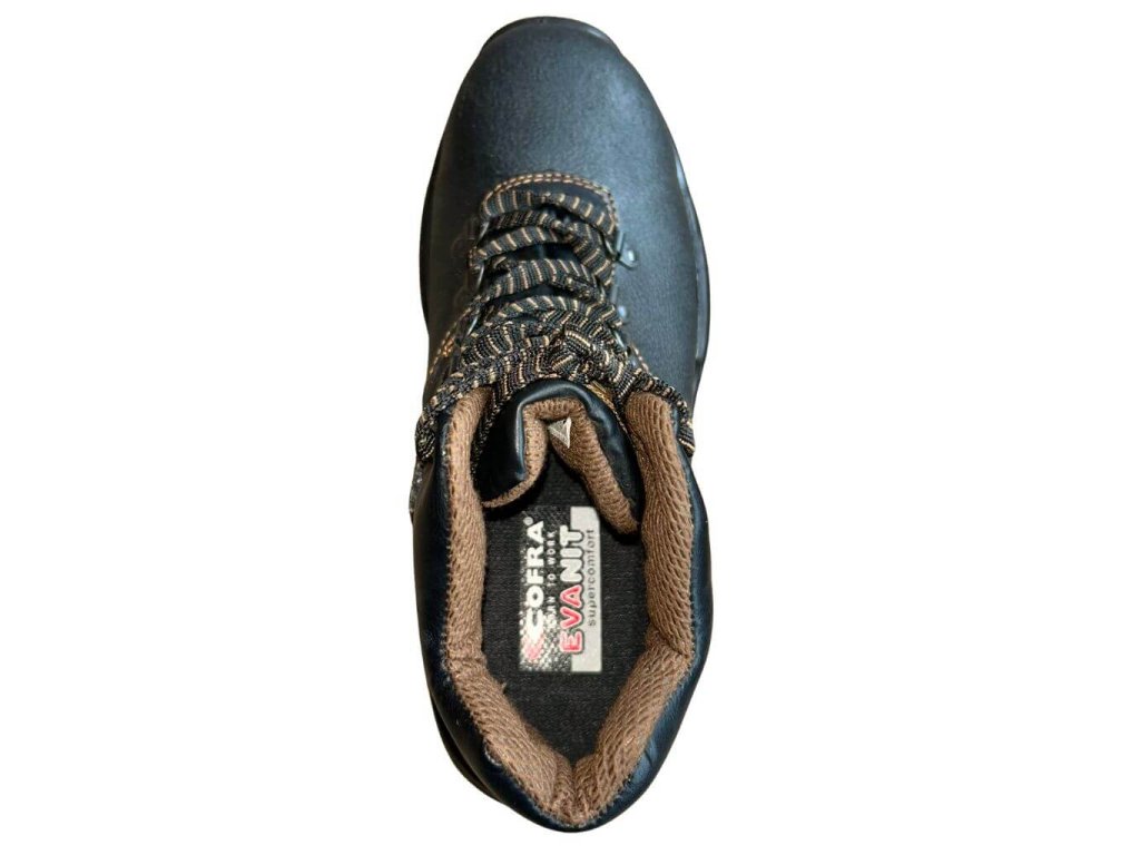 Pracovná bezpečnostná obuv značky Cofra v členkovom prevedení spĺňa bezpečnostnú normu S2 a vyhlášku EN ISO 20345:2011. Je vyrobená z voduodpudivej kože a je doplnená o bezpečnostné prvky ako je napríklad oceľová ochranná špica a protišmyková podrážka.