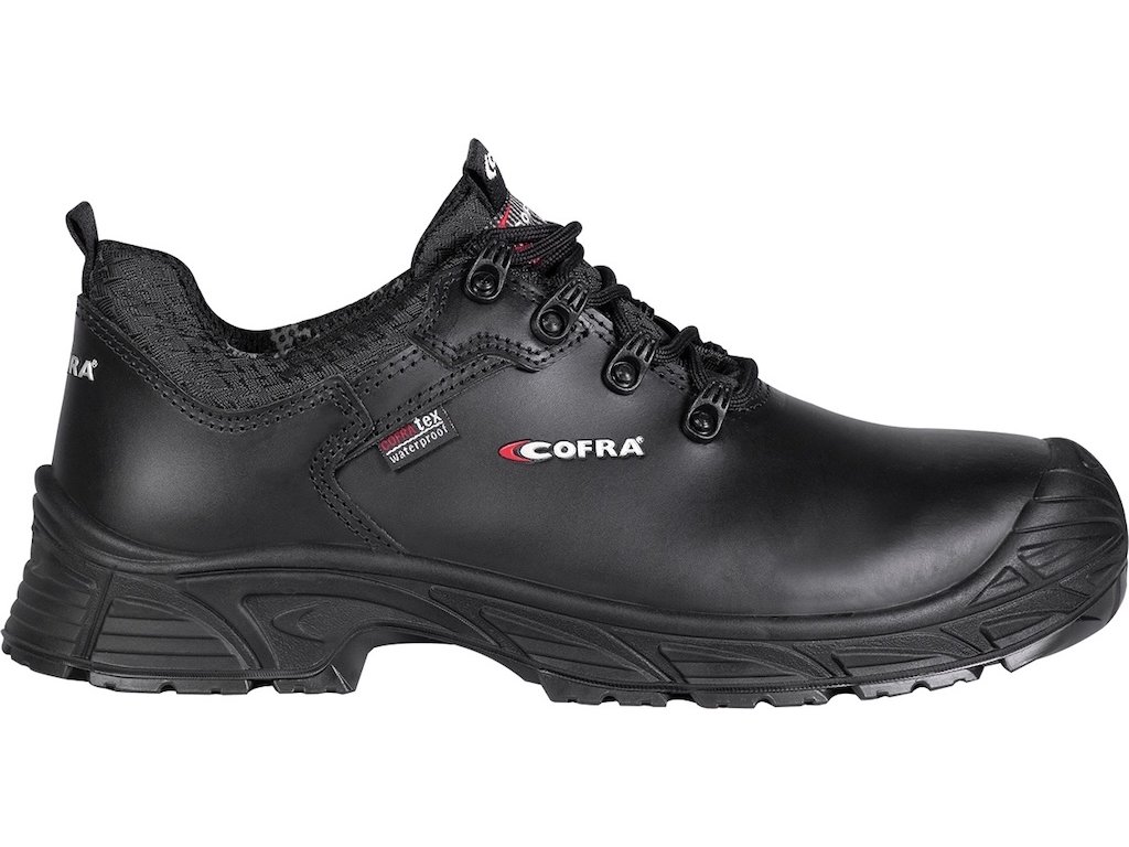 Nízka pracovná obuv značky Cofra s vodoodpudivým koženým zvrškom a membránou COFRA-TEX WATERPROOF UNIVERSAL poskytuje ochranu pred vlhkosťou a zároveň priedušnosť. Stielka ponúka anatomickú podporu, absorpciu vlhkosti a vynikajúce tlmenie nárazov pre maximálny komfort. Obuv je vybavená nekovovou sklolaminátovou špičkou a dvojhustotnou PU podrážkou pre bezpečnosť a odolnosť.