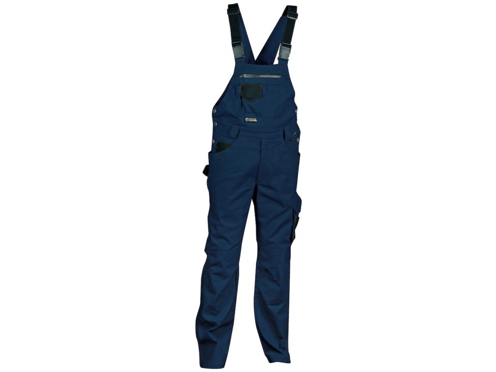 Pracovné montérky na traky značky Cofra sú spoľahlivou voľbou pre náročné podmienky. Majú ergonomický strih kolien, zosilnený rozkrok a kolená, nastaviteľné traky s rýchloupínaním a množstvo praktických vreciek, vrátane mobilného vrecka s E-WARD ochranou. Elastický pás, pútko na kladivo a kvalitný YKK® zips zaručujú pohodlie aj odolnosť počas celého dňa v týchto pracovných montérkach.