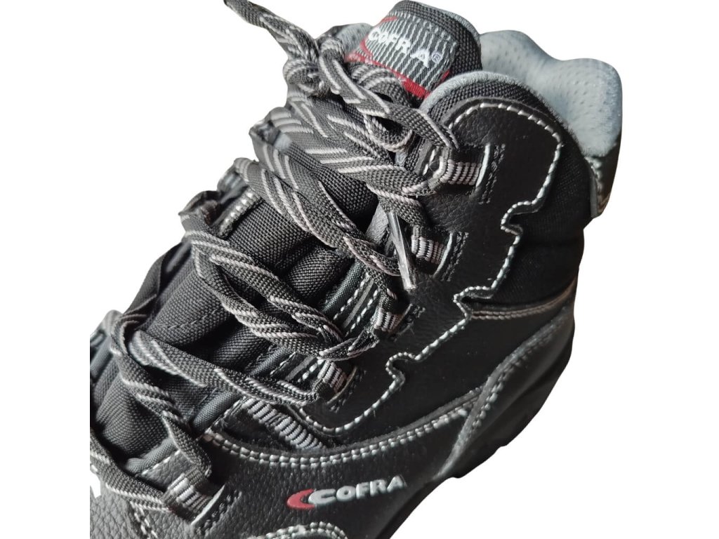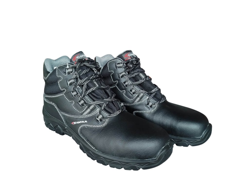 Bezpečnostná pracovná obuv značky Cofra v členkovom prevedení je vyrobená z voduodpudivej kože v spojení s priedušnou tkaninou. Z bezpečnostného hľadiska spĺňa táto obuv pracovnú normu S3 a vyhlášku EN ISO 20345:2011. Je doplnená o sklolaminátovú (kompozitnú) špicu a protišmykovú podrážku.