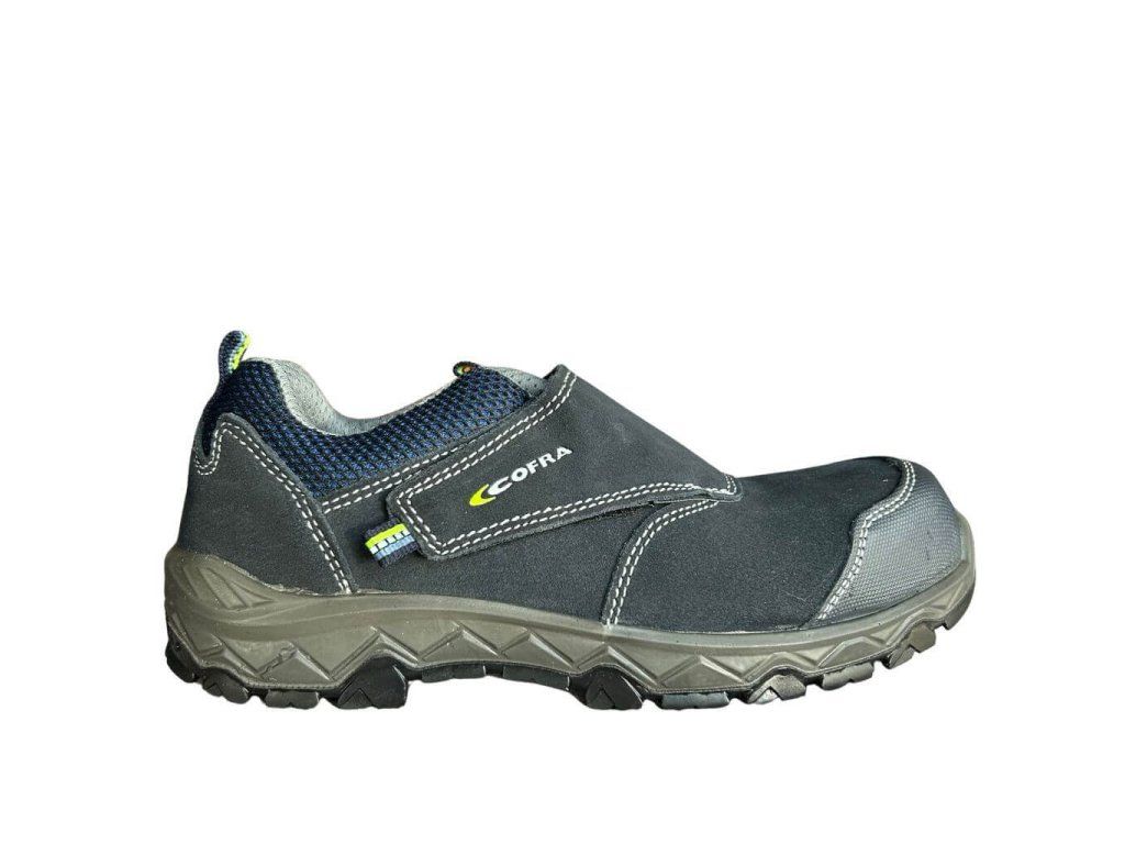 Bezpečnostná pracovná obuv značky Cofra v nízkom prevedení je vyrobená z voduodpudivej semišovej kože. Z bezpečnostného hľadiska spĺňa táto obuv pracovnú normu S3S a vyhlášku EN ISO 20345:2022. Je doplnená o sklolaminátovú (kompozitnú) špicu a protišmykovú podrážku odolnú proti chladu a olejom. Vďaka podrážke, ktorá izoluje pred chladom je táto obuv vhodná aj na zimu. Výhodou je oderu a okopu odolná špica, ktorá chráni prednú časť topánky pred mechanickým poškodením.