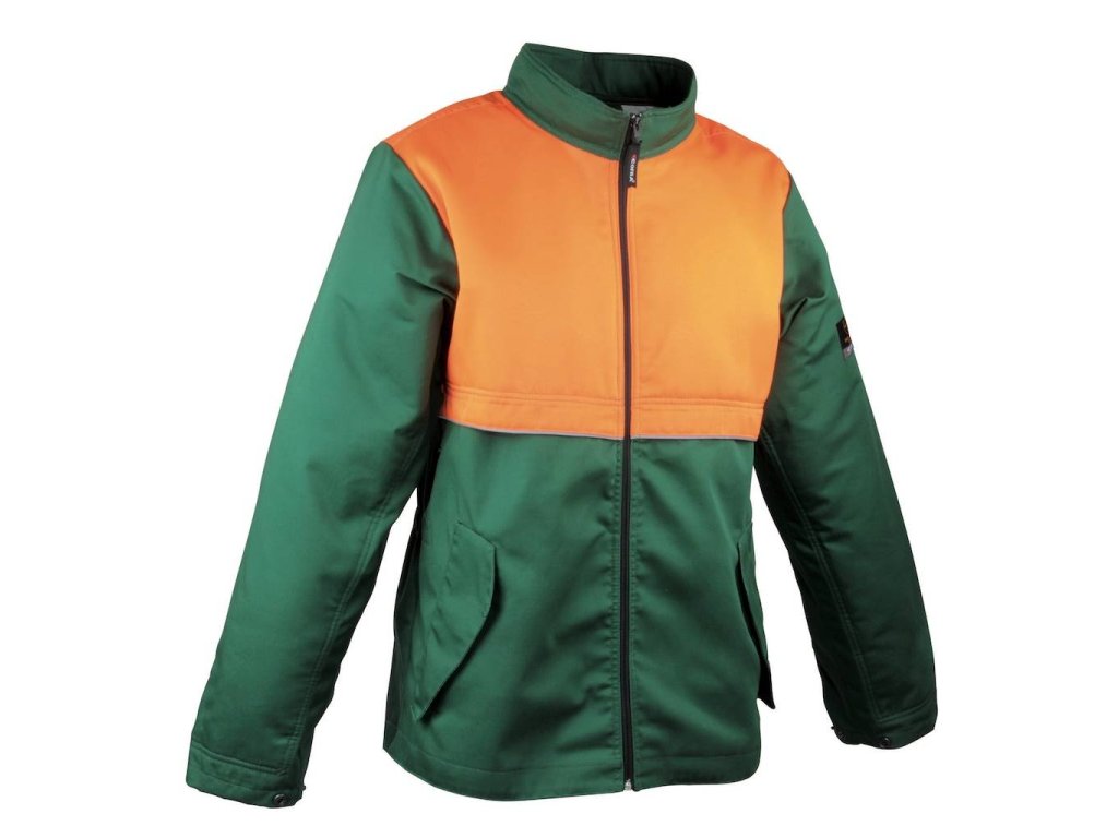 Pracovná neporézna pilčícka bunda značky Cofra s ventilačným systémom na chrbte aj vpredu, vystuženým golierom a ochrannými prvkami na ramenách, rukávoch a hornej časti hrudníka. Má nastaviteľný pás so šnúrkou, manžety na cvoky, fluorescenčné vložky, reflexné prvky a množstvo vreciek. Vhodná ako pilčícka neporézna bunda s ochranou proti prerazniu motorovou pílou.