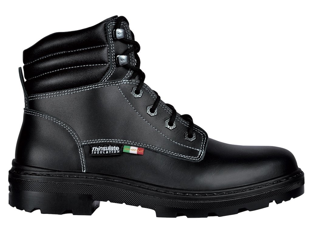 Bezpečnostná pracovná obuv značky Cofra v členkovom prevedení je vyrobená z pravej talianskej voduodpudivej kože. Je doplnená o bezpečnostné prvky, ako napríklad oceľovú ochrannú špicu a protišmykovú podrážku izolujúcu pred chladom. Vďaka zatepleniu technológiou THINSULATE je táto obuv vhodná aj do chladných zimných mesiacov. Moderné kožené prevedenie čiernej farby dopĺňa elegantný jednoduchý vzhľad.