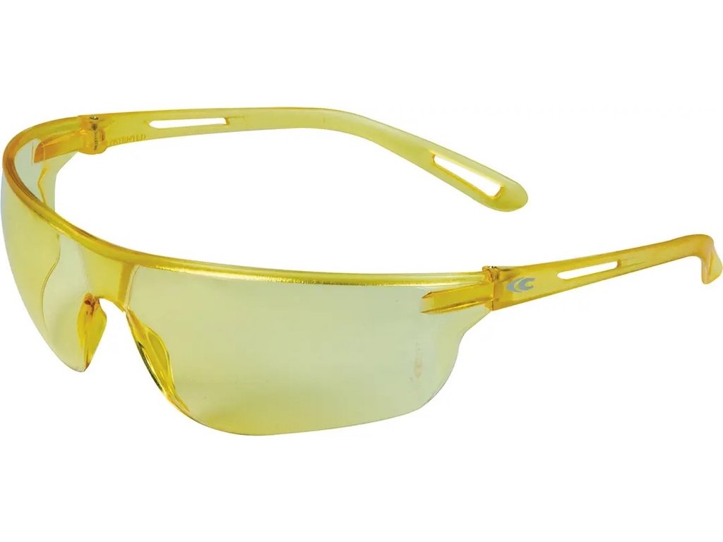 Ochranné pracovné okuliare značky Cofra s oblým dizajnom a žltými polykarbonátovými sklami, ktoré spĺňajú normy EN 166 – EN 170. Vhodné na prácu v nepriaznivom počasí a hmlistom prostredí, pri kontrole povrchov, v tuneloch, podzemí, baniach či skladoch. Poskytujú spoľahlivú ochranu aj pri mechanických činnostiach a pri expozícii UV žiareniu.