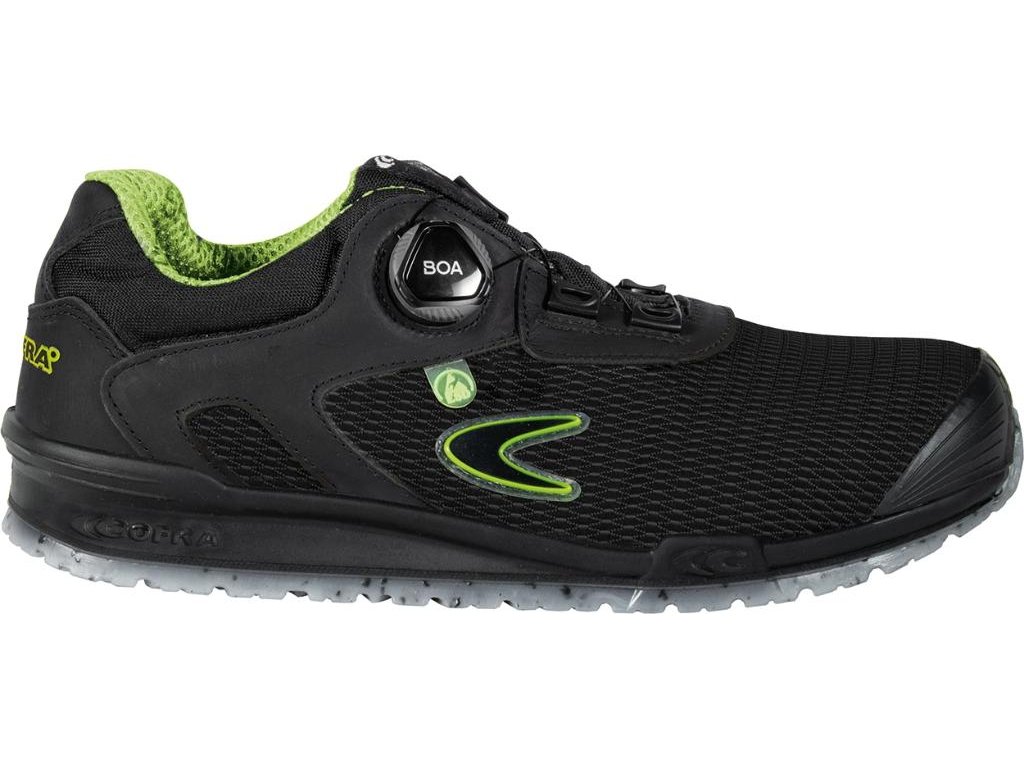 Bezpečnostná pracovná obuv značky Cofra v nízkom prevedení je vyrobená z odolnej tkaniny a voduodpudivej kože. Je doplnená o antistatickú ESD ochranu, hliníkovú špicu, protišmykovú podrážku odolnú proti olejom a dodatočnú ochranu prstov. Výhodou je rýchlošnúrovací BOA systém viazania, ktorý šetrí čas pri obúvaní. Túto obuv je možné doplniť o špecifické ortopedické vložky.