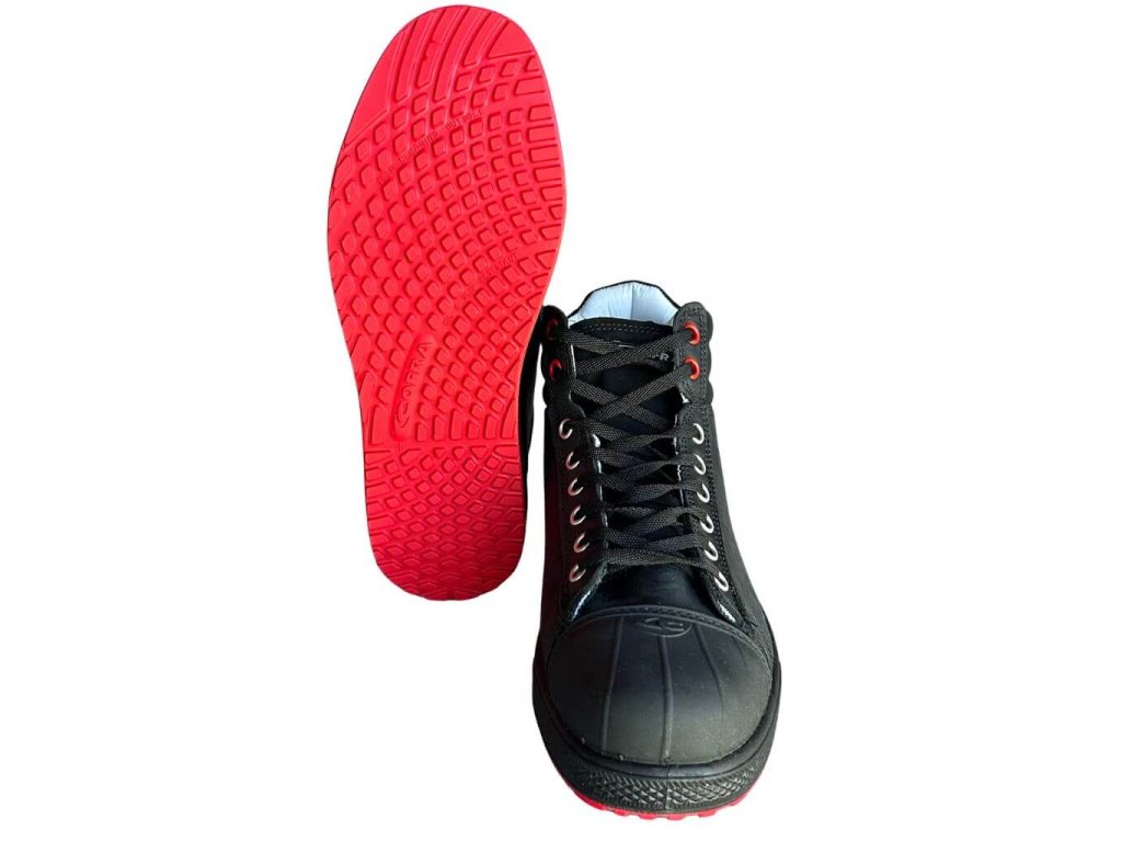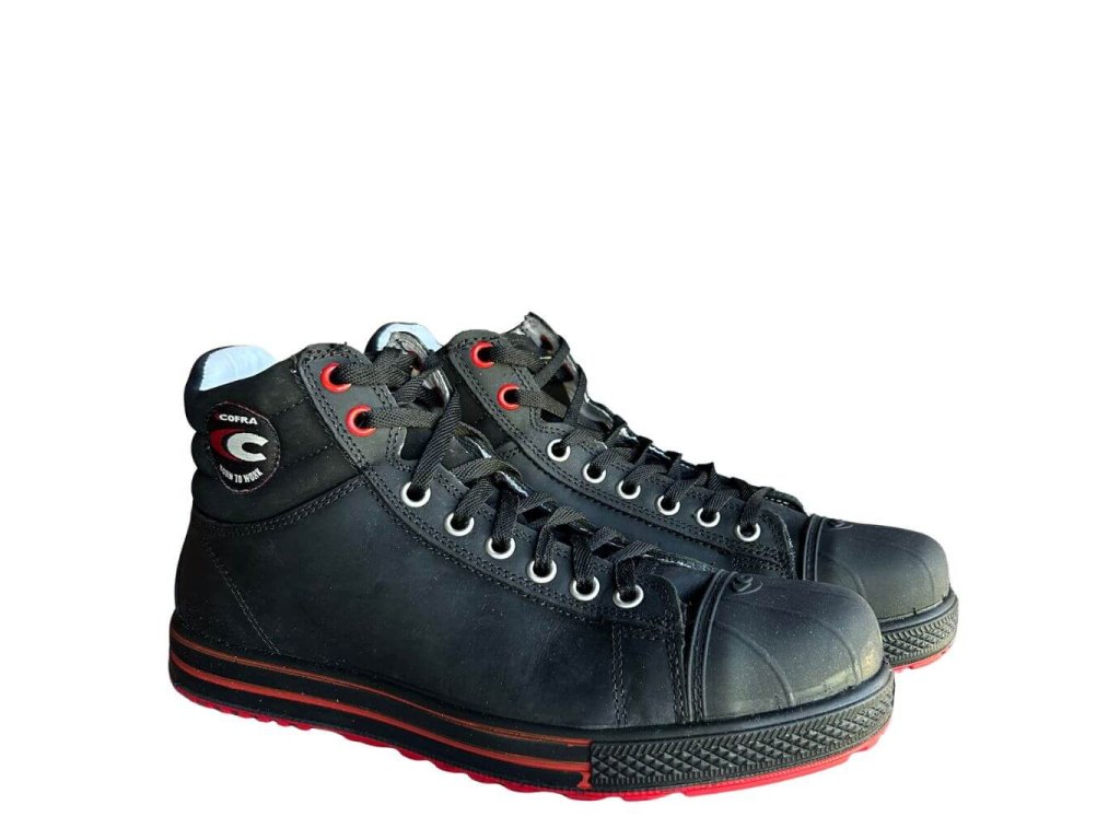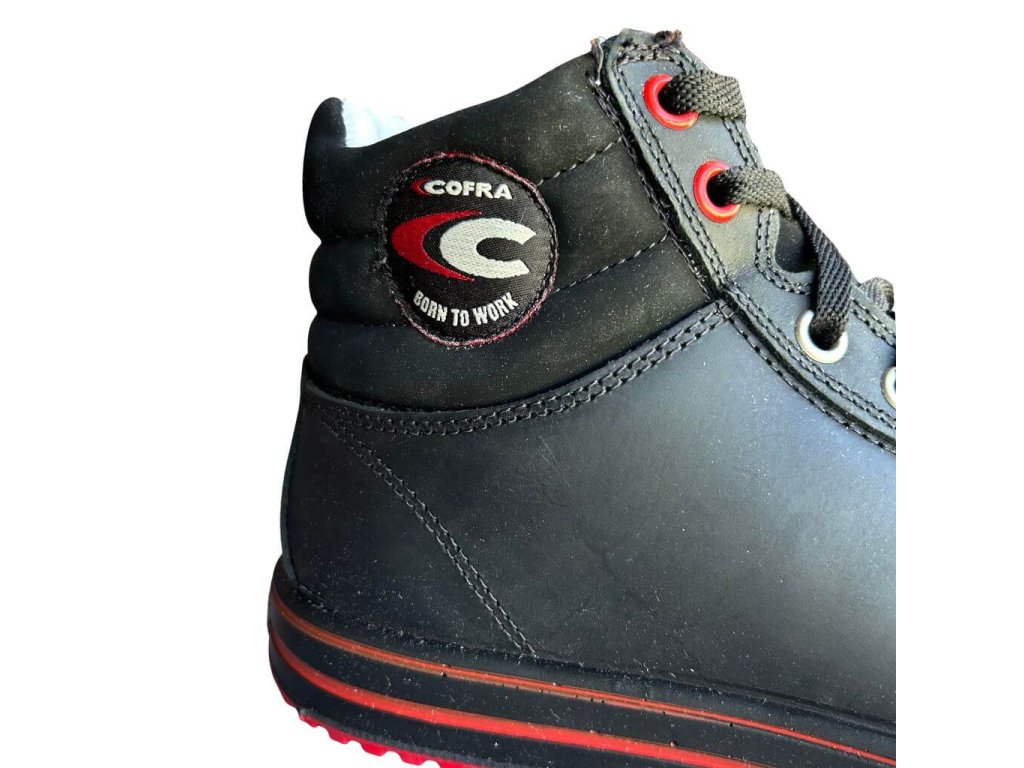 Pracovná bezpečnostná obuv značky Cofra v modeli Steal v členkovom prevedení je vyrobená z pravej talianskej voduodpudivej nubukovej kože. Moderné celokožené prevedenie v podobe členkových tenisiek je doplnené o bezpečnostné prvky - hliníková špica, ochrana prstov a protišmyková podrážka. Dizajnovým doplnkom sú dva farebné variácie šnúrok v balení.