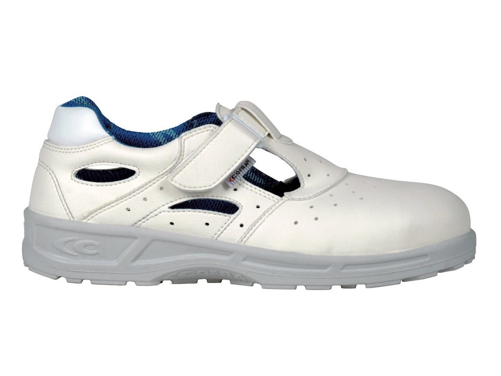 Bezpečnostná pracovná obuv značky Cofra v nízkom prevedení vo forme sandál je vyrobená s využitím technológie MICROTECH. Vyznačuje sa vlastnosťami, ako je rýchla a jednoduchá údržba a vysoká odolnosť voči mechanickému poškodeniu či chemikáliám. Tieto topánky sú doplnené o bezpečnostné prvky - oceľovú ochrannú špicu a protišmykovú podrážku. Vďaka extrémnej ľahkosti sú vhodné ako pracovná obuv do rôznych zamestnaní, predovšetkým ako pracovná obuv zdravotníctva.