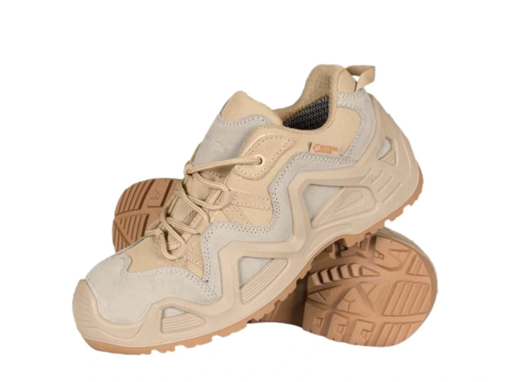 Nízke béžové topánky ideálne do prírody ale aj pre pracovníkov v skladoch. Podrážka chráni chodidlo pred prepichnutím ostrými predmetmi. Ochranná priedušná obuv, ideálna aj na celodenné nosenie.